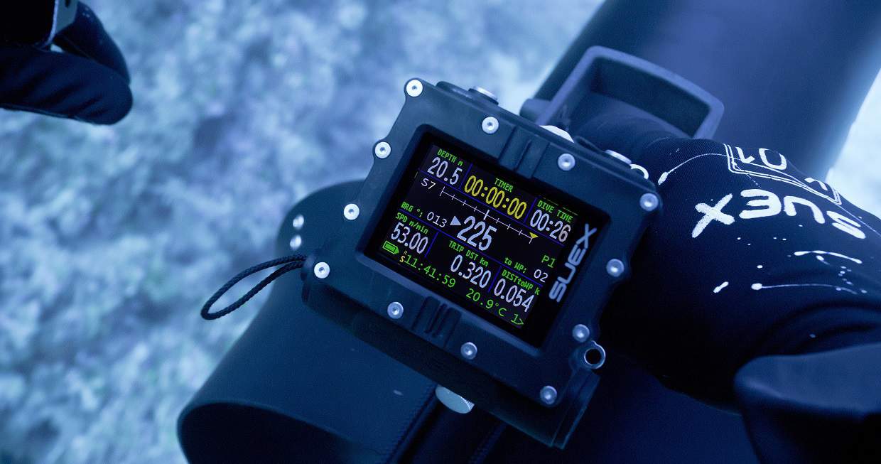 ERON D-1 dashboard is a complete underwater instrument equipped with an advanced technical underwater navigation system able to receive, via wireless connection, the telemetry data coming from the DPV (scooter) and display the battery charge level of the DPV as well as navigation data.