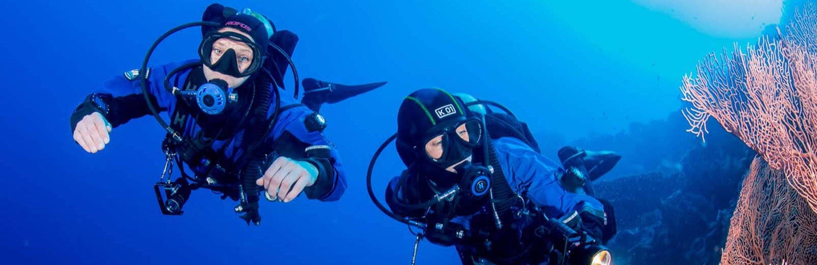 All major pieces of equipment are included in the course cost, including regulators, backplate and wing, rigid single-bladed fins, tanks and weights.