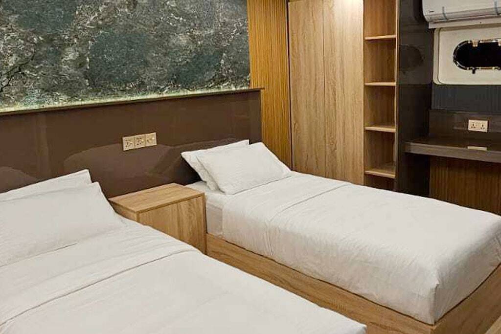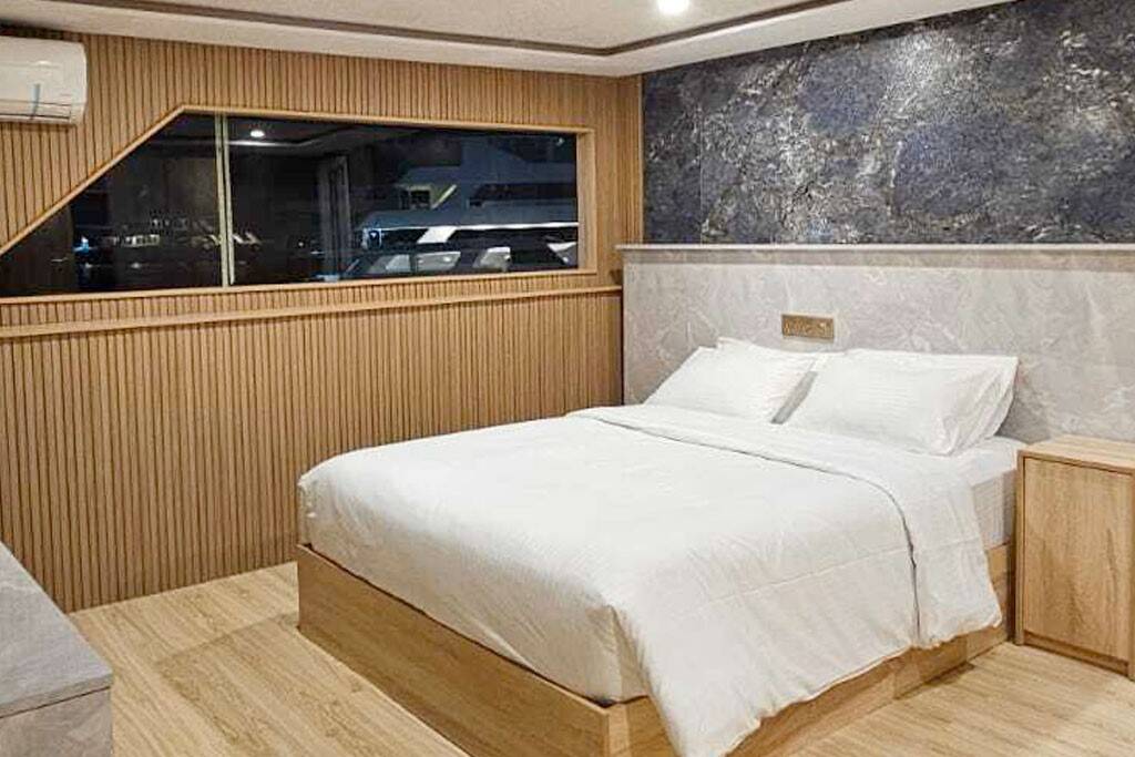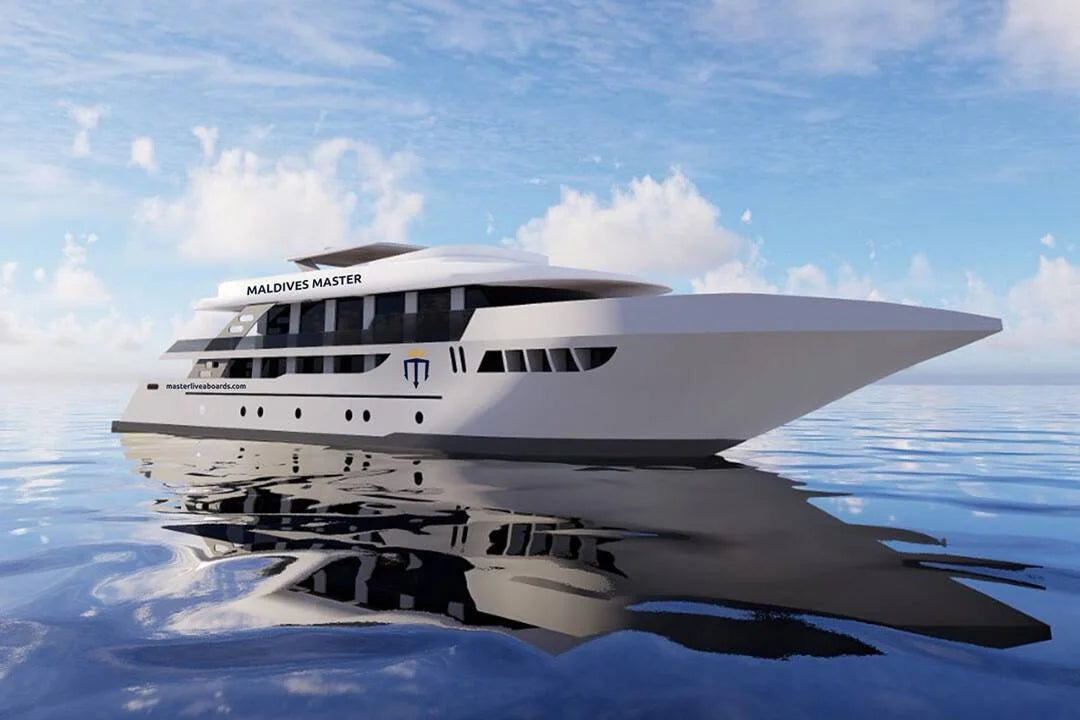 TheMaldives Masteris a 42m liveaboard vessel that boasts two roomy fixed double-bed cabins, eight convertible twin/double cabins and two single cabins. She features an indoor dining area, a bar, and a sky lounge. A shaded outdoor area can be found on the mid-deck, plus four sun decks: a viewing deck located at the front of both the mid-deck and upper deck, an open-air deck on the top deck, and an ocean deck at the stern of the boat, all providing comfortable seating and loungers.