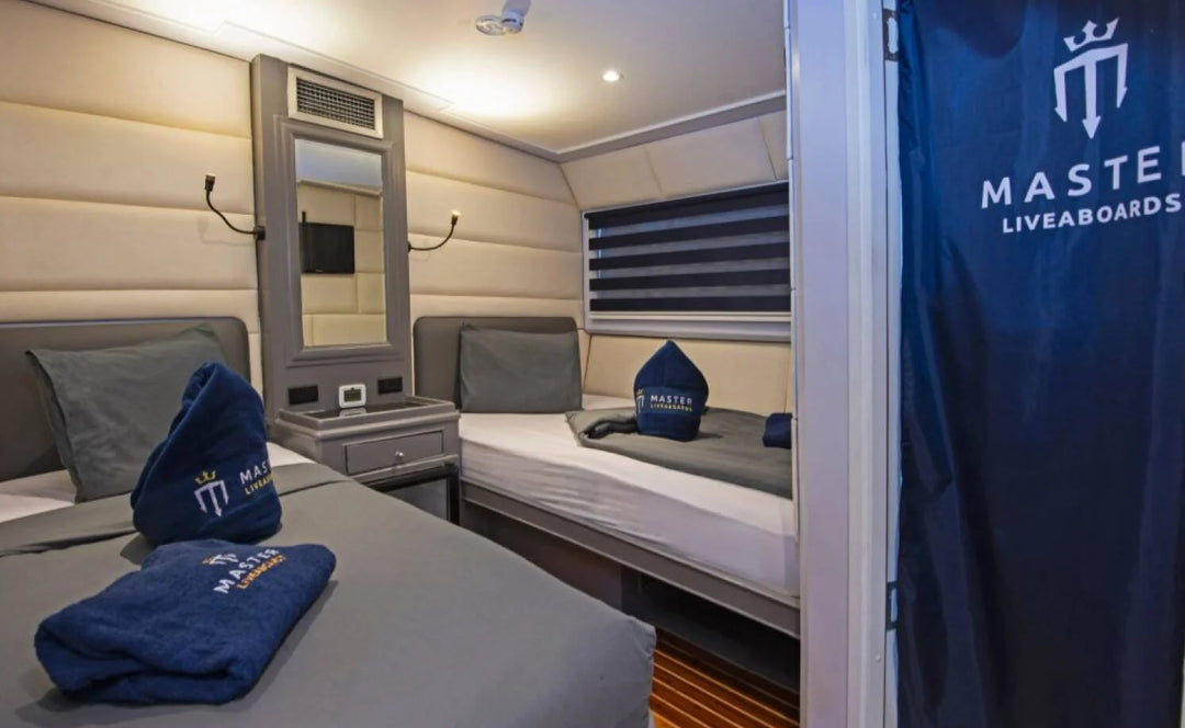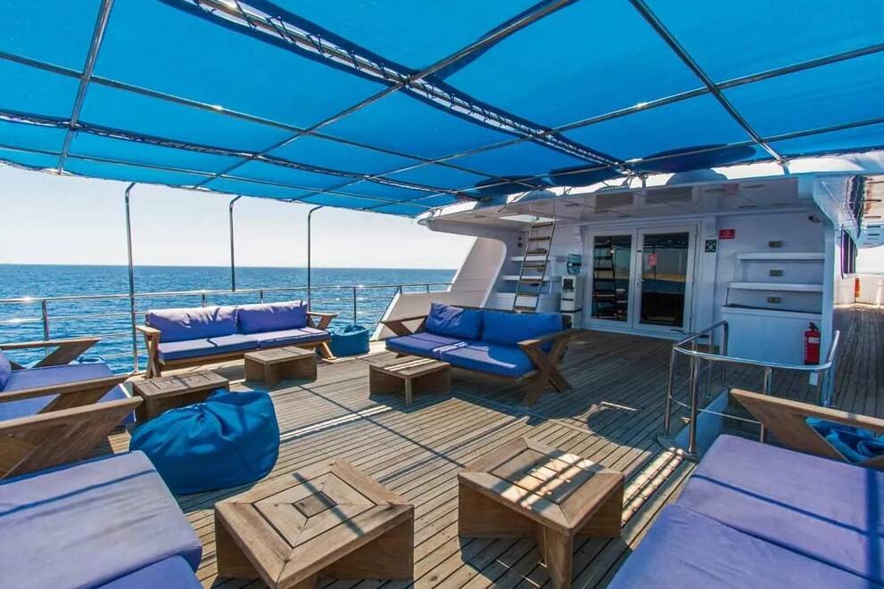 With a large dining area, a separate air-conditioned sky lounge featuring a state-of-the-art entertainment system, a shaded deck area with comfortable seating, a jacuzzi and a sun deck, there is always space to relax and enjoy the beauty of the Red Sea. Blue Horizon features 13 cabins, benefiting from air-conditioning, en-suite facilities with centrally heated hot water and complimentary shower gel, lockable safety boxes and mini-refrigerators.