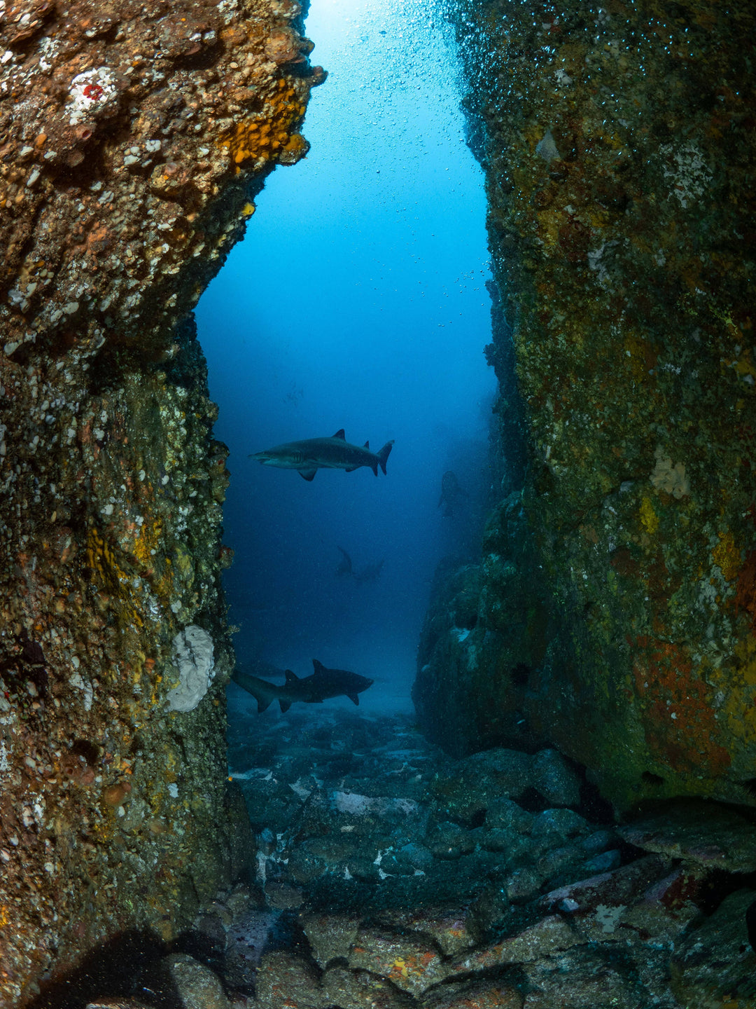 Fish Rock Cave is a crucial habitat for the grey nurse shark, and during the summer months a migration site for schools of hammerhead sharks. Watching these gentle giants swim gracefully in their natural environment is a privilege for any diver.